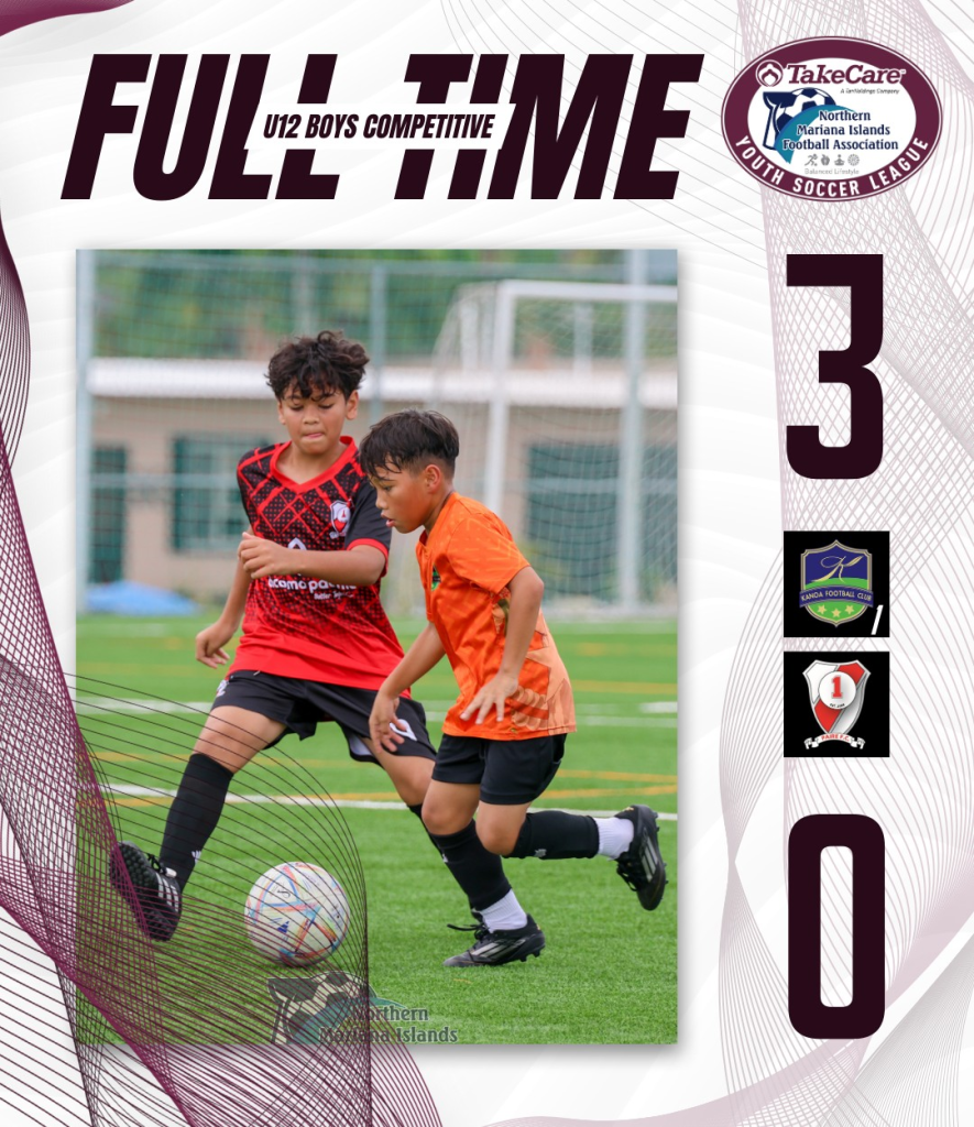 In the U12 Boys Competitive Division, MP United FC secured a dominant 5-0 victory over Kanoa FC 1. Jose Tenorio led the charge with two goals, while Reide Benson and Evan Poole each added one to the tally. An unfortunate own goal for Kanoa FC 1 sealed MP United’s commanding win.