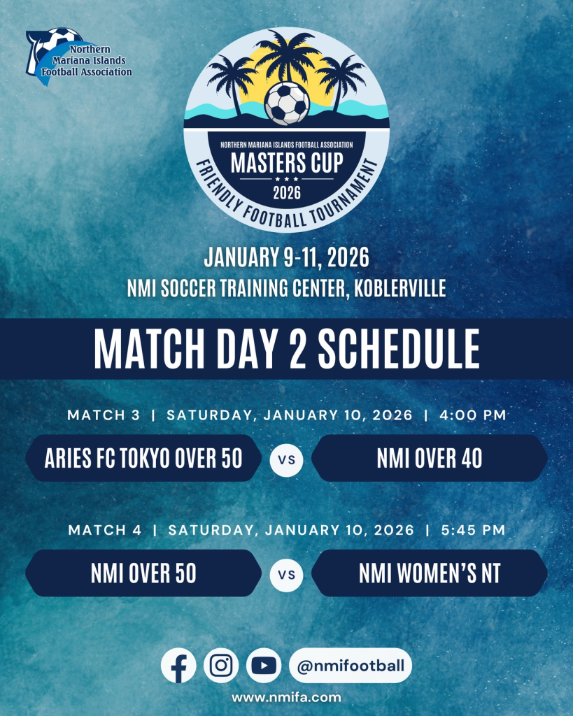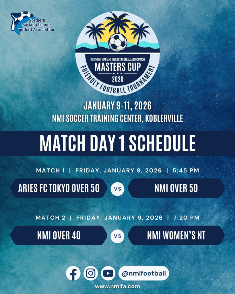Join us at the NMI Soccer Training Center for three days of friendly matches featuring players from Aries FC Tokyo Over 50, NMI Over 50, NMI Over 40, and the NMI Women’s National Team!
