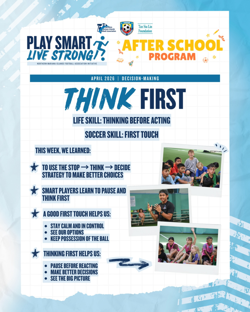 They discussed how taking a moment to pause can help them make better decisions, avoid mistakes, and stay in control of the game. Just like a good first touch sets up the next play in soccer, careful thinking sets them up for success in life.